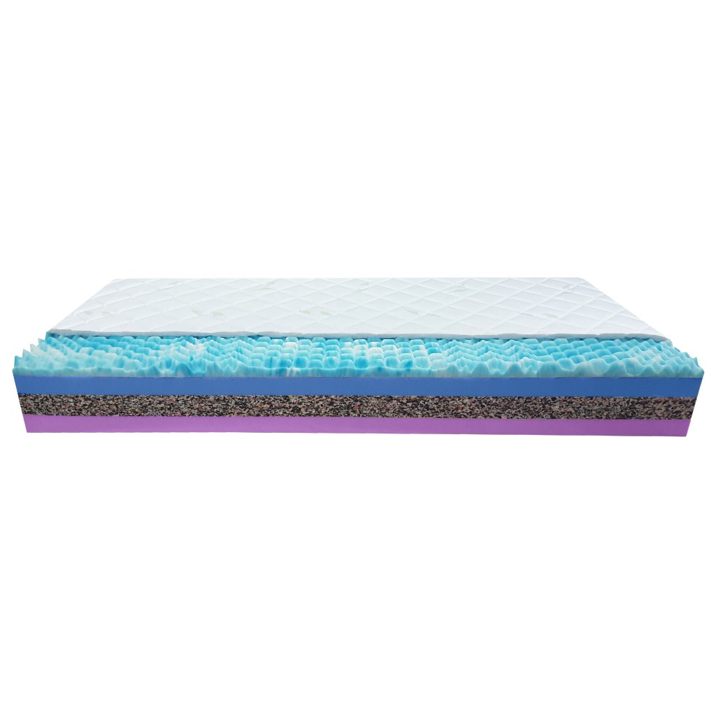 | Složení matrace: | 7 zónové jádro matrace tvořeno z profilované extra soft HR pěny, Flexifoam® pěny, RE-80 pěny, a studené pěny HR vyšší tuhosti. |