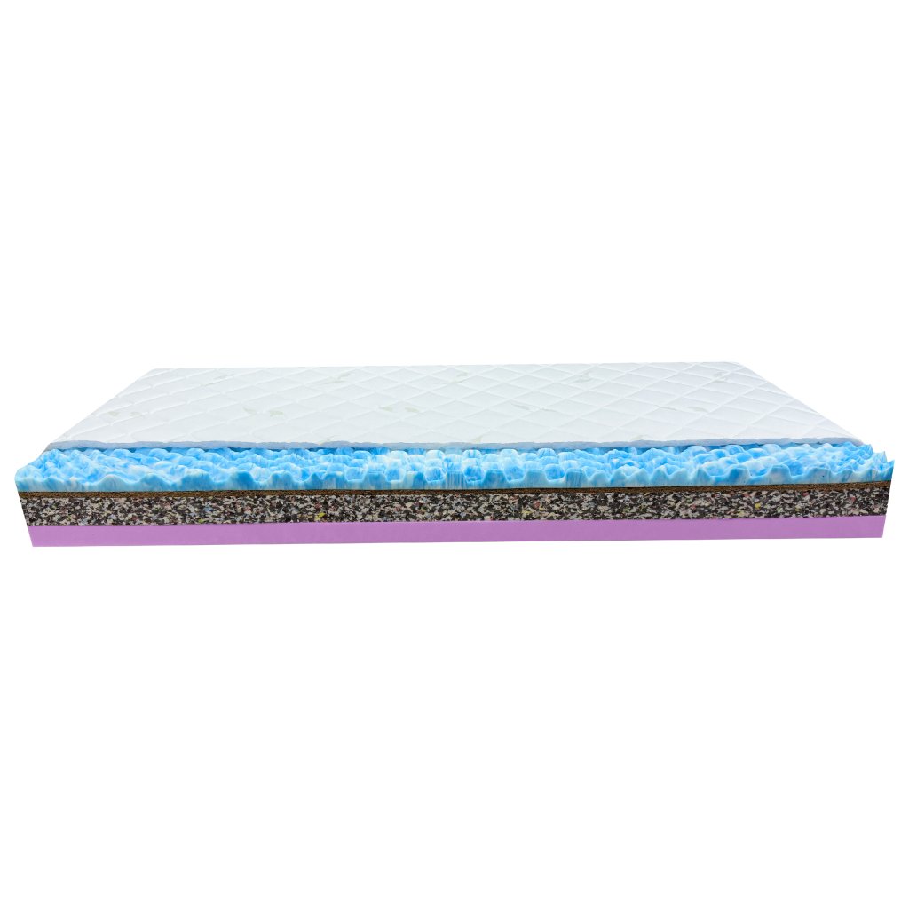 | Složení matrace: | Jádro matrace tvořeno ze studené pěny HR, tlakově pojené pěny RE-80, kokosového vlákna a profilované extra soft studené pěny |