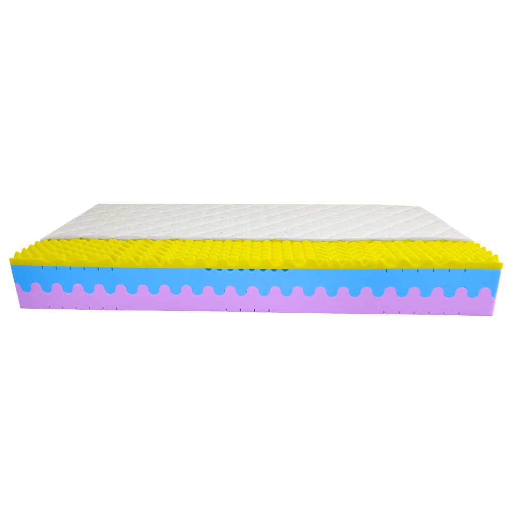 | Složení matrace: | 7 zónové jádro matrace tvořeno z 10cm profilované HR pěny 38kg/m3, z 10cm profilované HR pěny 40kg/m3 a z profilované paměťové p |