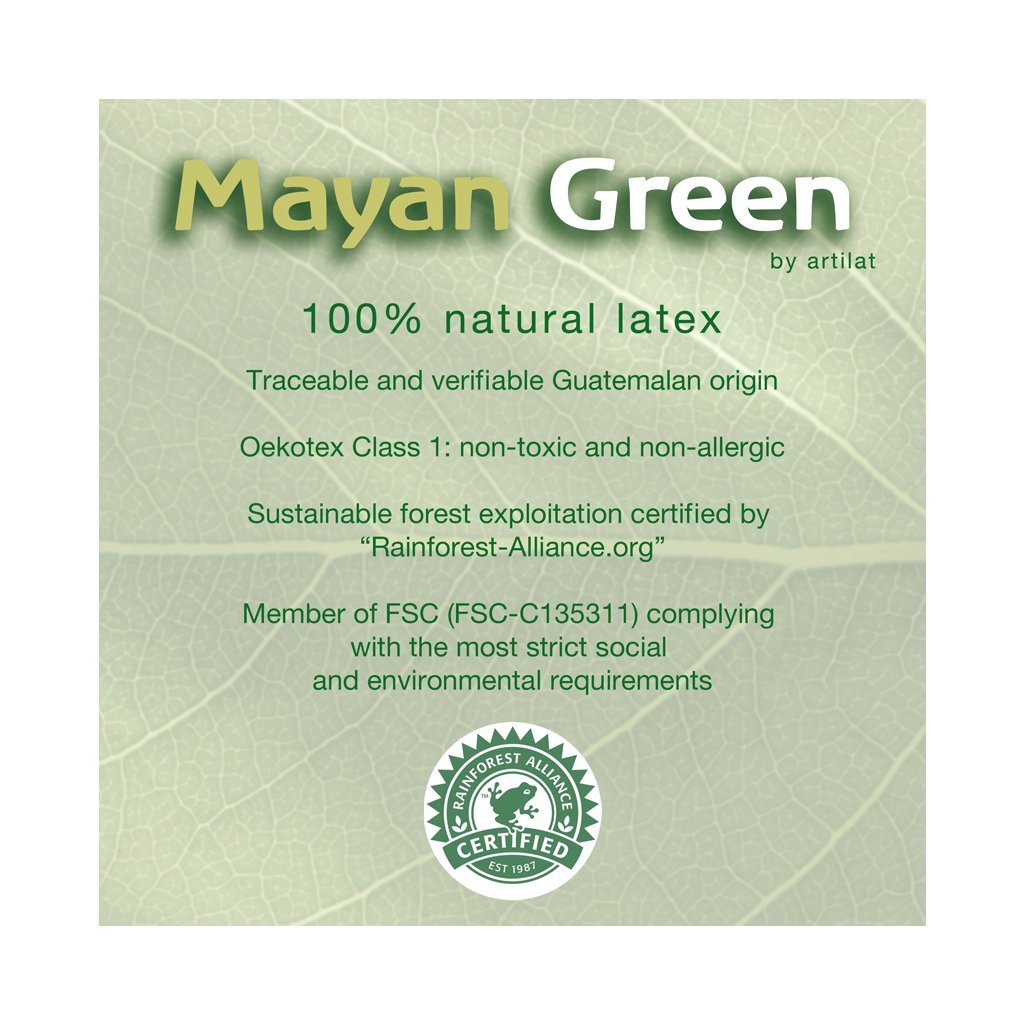 Pro výrobu polštáře ERGO AIR VOGUE je použitý 100% přírodní latex certifikace Mayan Green. Polštáře Mayan Green jsou díky svému 100% přírodnímu původu z certifikovaných guatemalských plantáží skutečně ekologické a šetrné k životnímu prostředí.