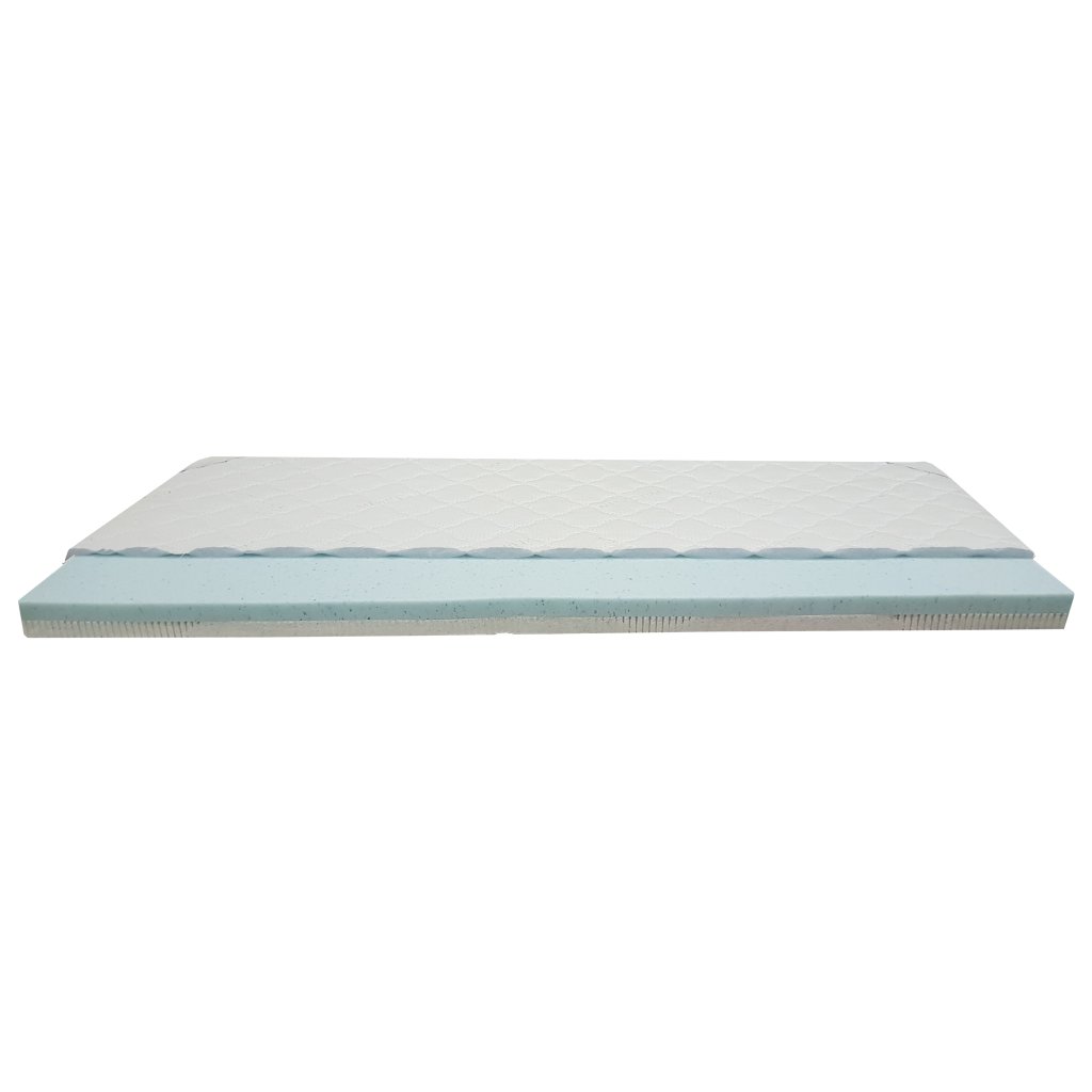 4 cm vysoká paměťová pěna VISCO GEL o objemové hmotnosti 50 kg/m3, s tuhosti H2 - měkčí strana